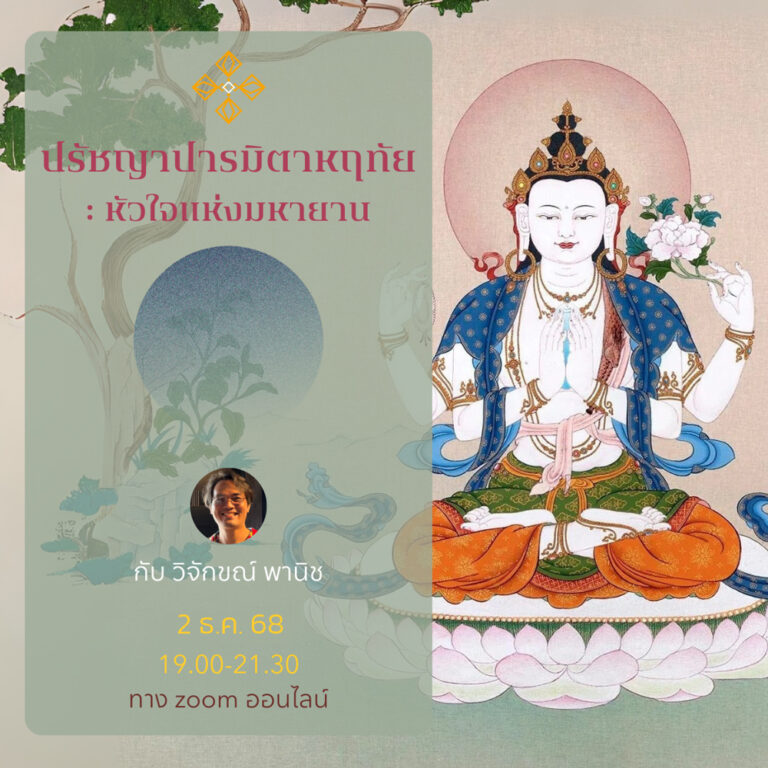 กิจกรรม “ปรัชญาปารมิตาหฤทัย” : หัวใจแห่งมหายาน กับ วิจักขณ์ พานิช 2 ธ.ค. 68 (ออนไลน์)September 11, 2025November 18, 2025